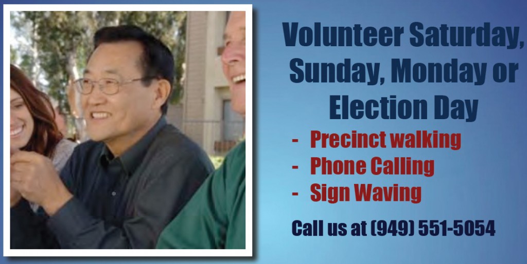Also, if you can help between now and Tuesday, call 949-378-4580. You can help by walking precincts, phone calling or sign waving.
