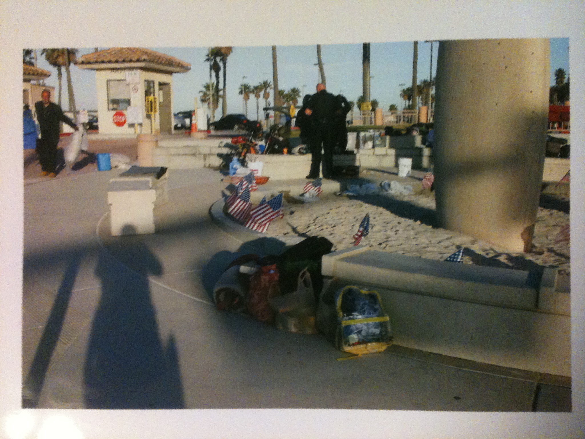 A print of a photo taken by Huntington Beach Police showing Occupiers "lodging" at Beach and PCH. The Occupy OC encampment, which has arguably been the longest-lasting continuous encampment in the United States, ended at 3 p.m. today.
