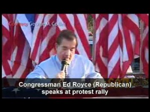 In Congress, Royce hides his antipathy towards immigrants through bills that have no hope of passage. In February of 2011, however, his true colors came out. At an Orange County fundraiser for battered women and the homeless, organized by the Islamic Circle of North America, a viral video captured the anti-Muslim hate rally that formed to harass the fundraiser participants. Protesters screamed at Muslim-American families and children to “go home” while local politicians encouraged violence against the participants.