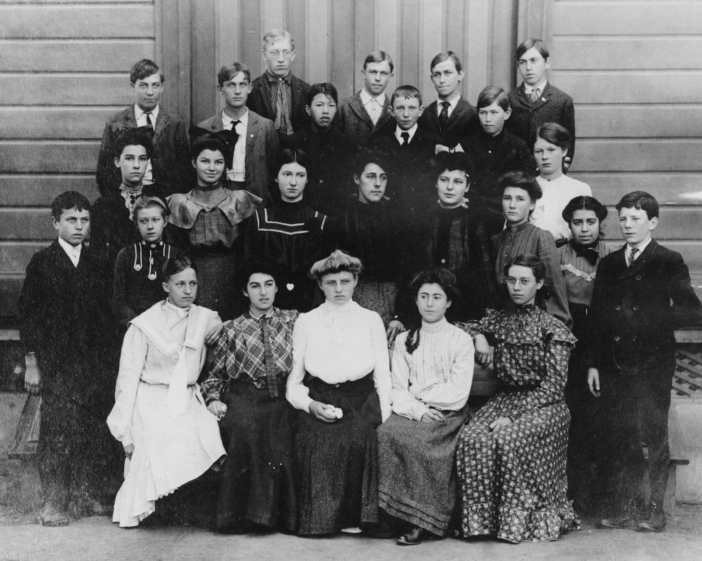 Central School 8th Graders on 1905 included students from a variety of backgrounds, all attending school together. Photo courtesy Anaheim Public Library