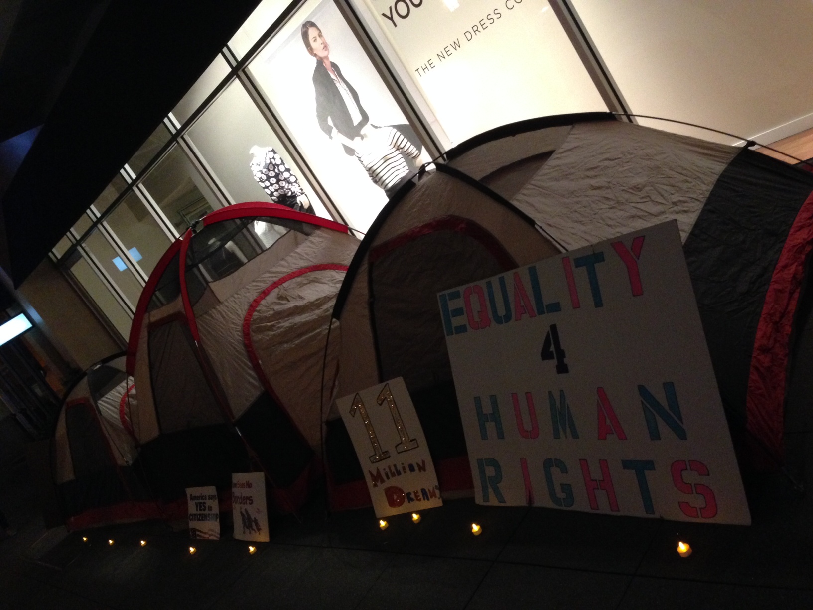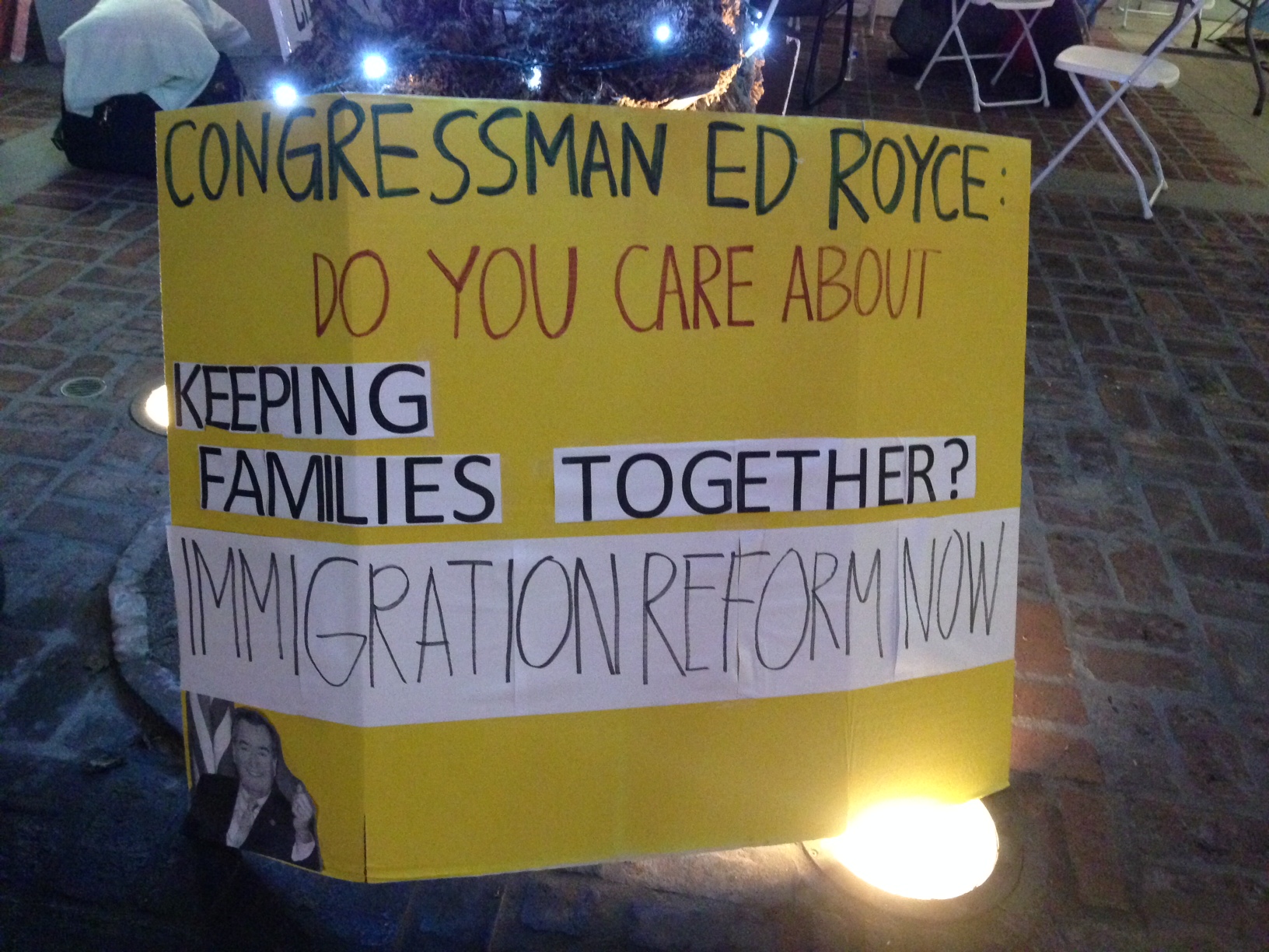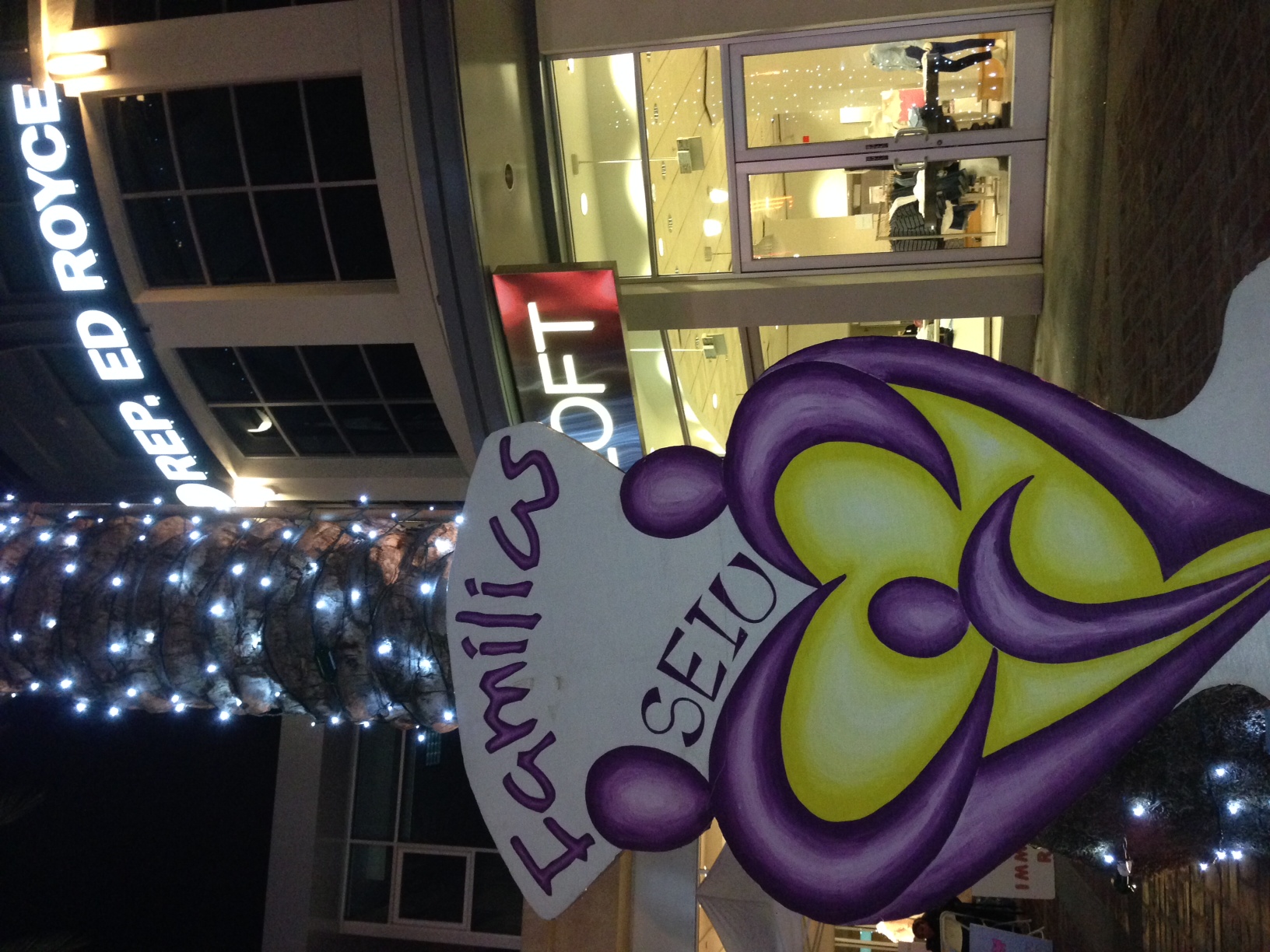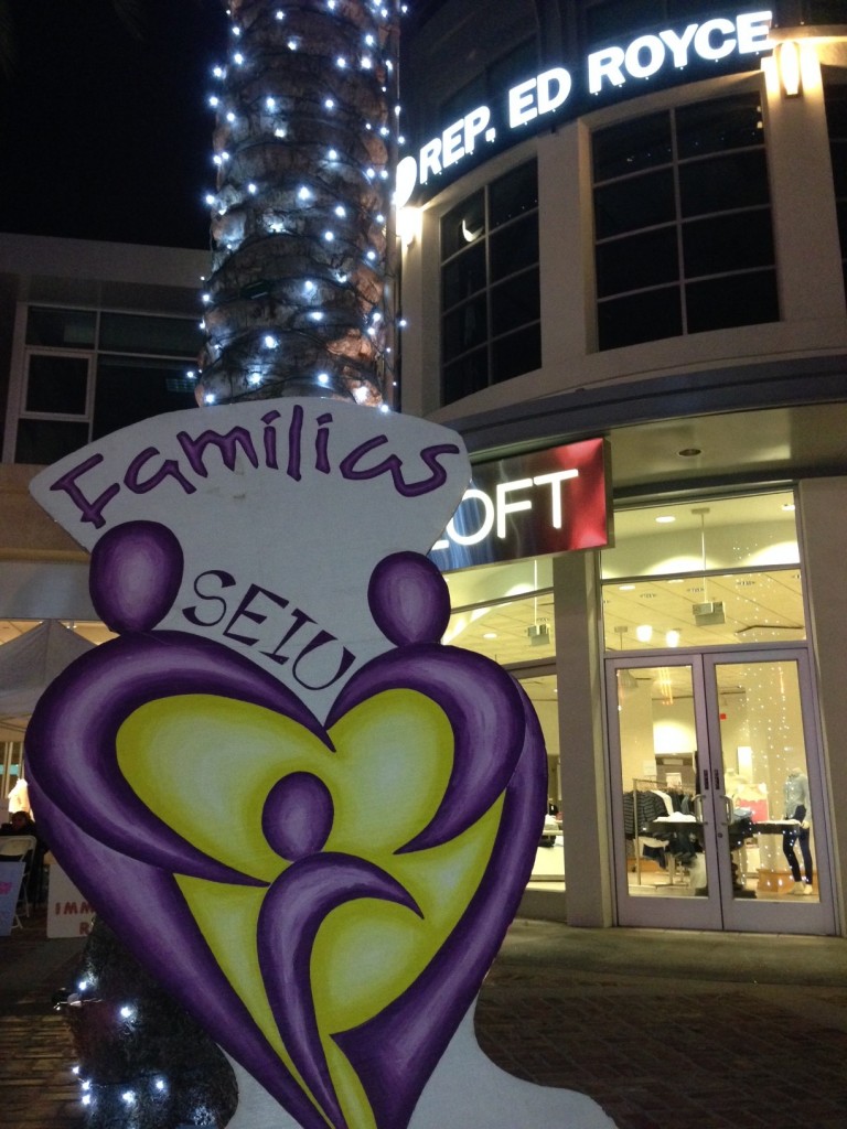 The meeting — not with Royce himself, but with his local Chief of Staff (or some other high position), which is further than they’ve ever gotten before — is to take place in a few minutes as this posts, at 10 a..m.  But, you still have some time to get there in time for the rally that will take place at 10:30!  (Please enjoy of fine shops and restaurants while you’re there — maybe take in a movie!  Sorry — too much?  OK, then just come to show your support for comprehensive immigration reform!) Here are some photos from the scene last night and this morning: