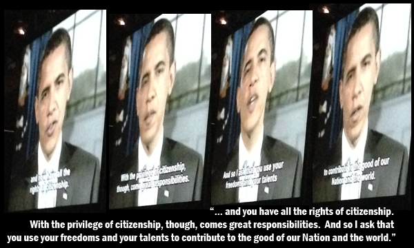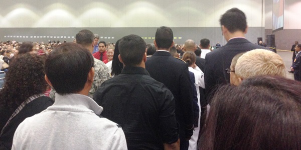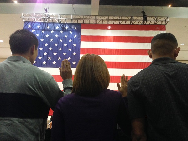 My daughter the Naval Reservist was naturalized last Wednesday at the Los Angeles Convention Center, one of 3,369 new citizens — and voters — added to our rolls. (Even though it was after the Voter Registration deadline, new citizens are given an exemption. I took her to the Registrar of Voters the next day. I put the odds at over 2:1 that she supported me. Beyond that, I shall not say.)