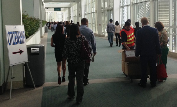 The LA Convention Center is very big. We were worried that we’d have trouble finding the room. Luckily, there were clear signs telling us where to walk. Yes, this was LITERALLY the “pathway to citizenship”!