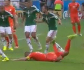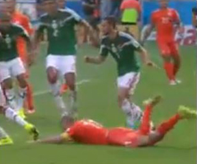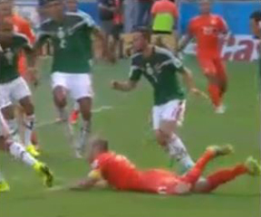 Anybody who’s watched soccer knows there are fouls – and then there are penalty kick fouls – which is how I should have expressed it. Robben clearly lost control of the ball before his foot was stepped on. Therefore he was no longer an immediate threat to score or even make a pass; in fact he is surrounded by four or five Mexicans – and Holland shouldn’t have been rewarded with a penalty kick.