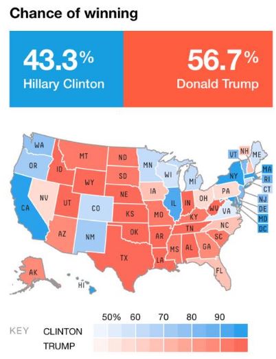 Looking at the international betting sites, Hillary still sits as a favorite ranging from 3.3:1 to 4:3:1. Regardless, California is a blue state lock.