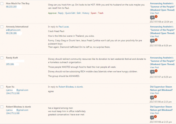 For those of you who are curious: this is an example of what’s usually in our “moderation” box of comments — those with characteristics that we’ve set to screen out (or that we place there manually if our screen missed them).