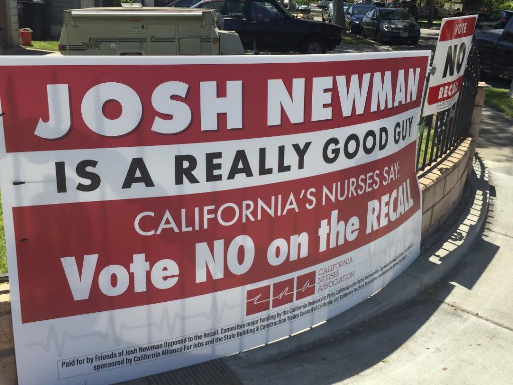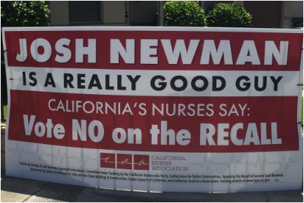 Newman is now being supported by the best signs in the 2018 primary, although they are coming from an independent campaign sponsored by the California Nurses Association. These signs — you can see an example up top — make people smile. They’re not as easy to appreciate as the bam-in-your-face riffs on the Seinfeld phrase, because their warm humor is most apparent to people who have come to know Josh Newman and who realize that the Nurses absolutely nailed it: