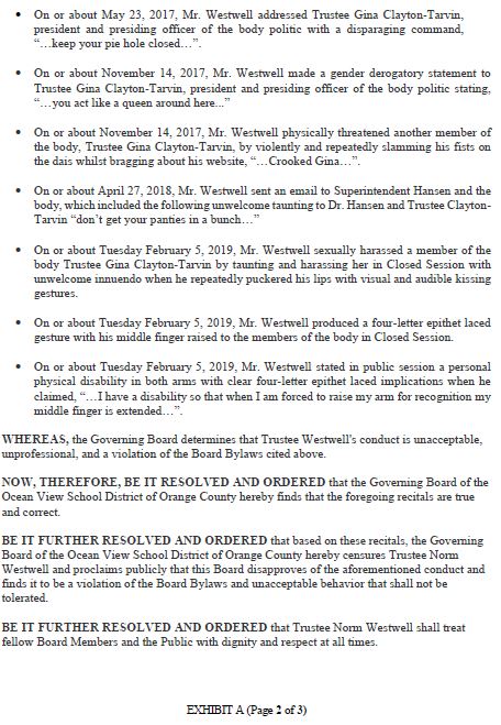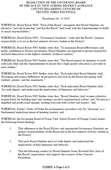 Ocean View School District Trustee Norm Westwell Censured for Harassment