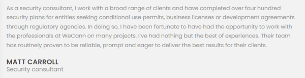 Carroll. Carroll … that name sounds familiar! I wonder if he’s related to anyone Melahat knows? And wouldn’t it be good to know more about this testimonial maker’s experiences with WeCann?