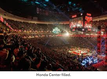 “The Honda Center has a seating capacity that varies by event, with a maximum of 18,336 for basketball and 17,174 for ice hockey. Averages show up to 153 events per year with an average attendance of 11,264 people per event.”