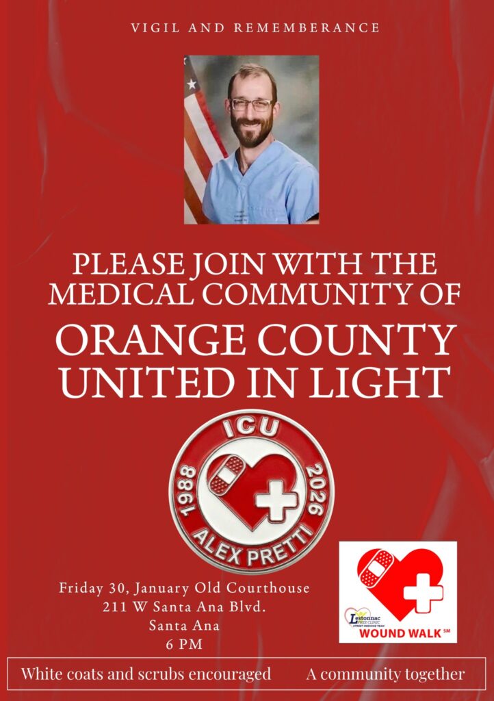 “Please join us in light; white coats and scrubs encouraged.” Facebook event link.