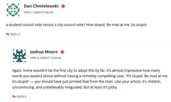 Ranked-Choice Voting proposed in Irvine; Joshua Moore writes in Favor.
